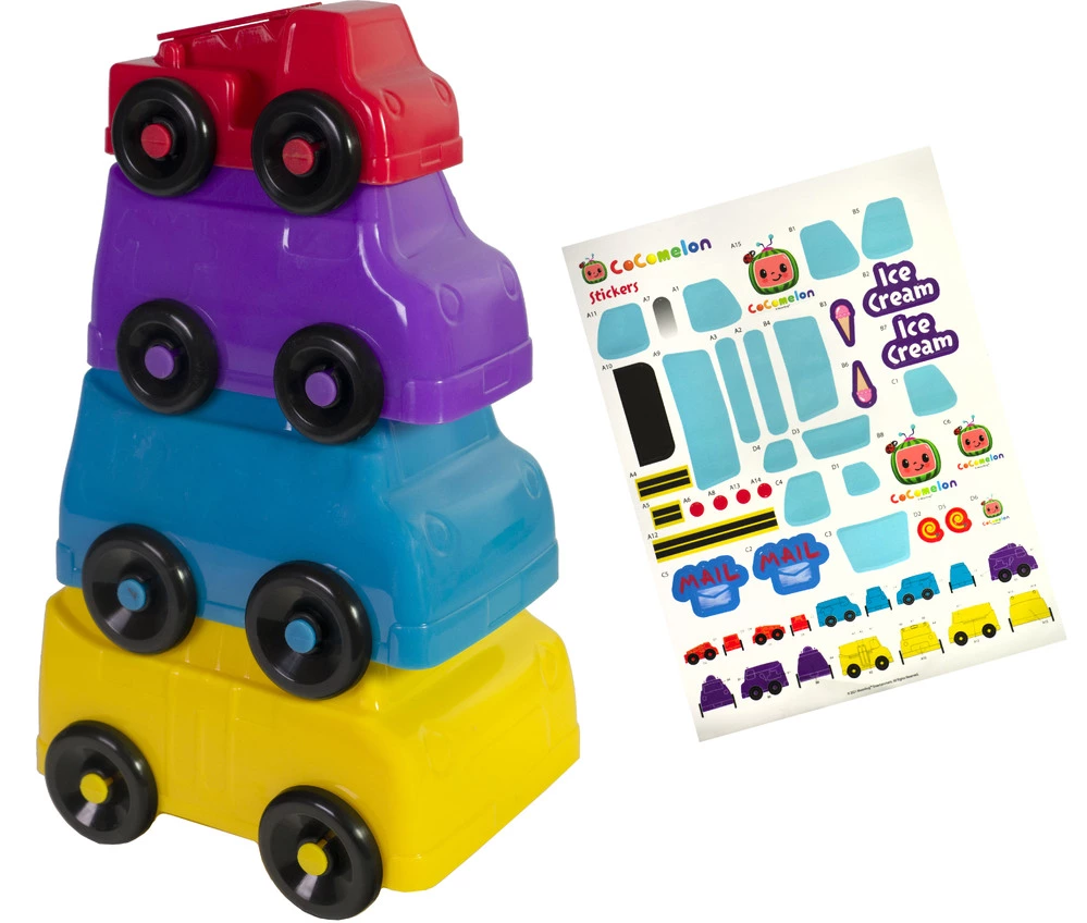 With these Stacking cars, you may encourage learning. There are four cars in the collection, as well as one sticker sheet. It is an awesome addition to any kids toy box.