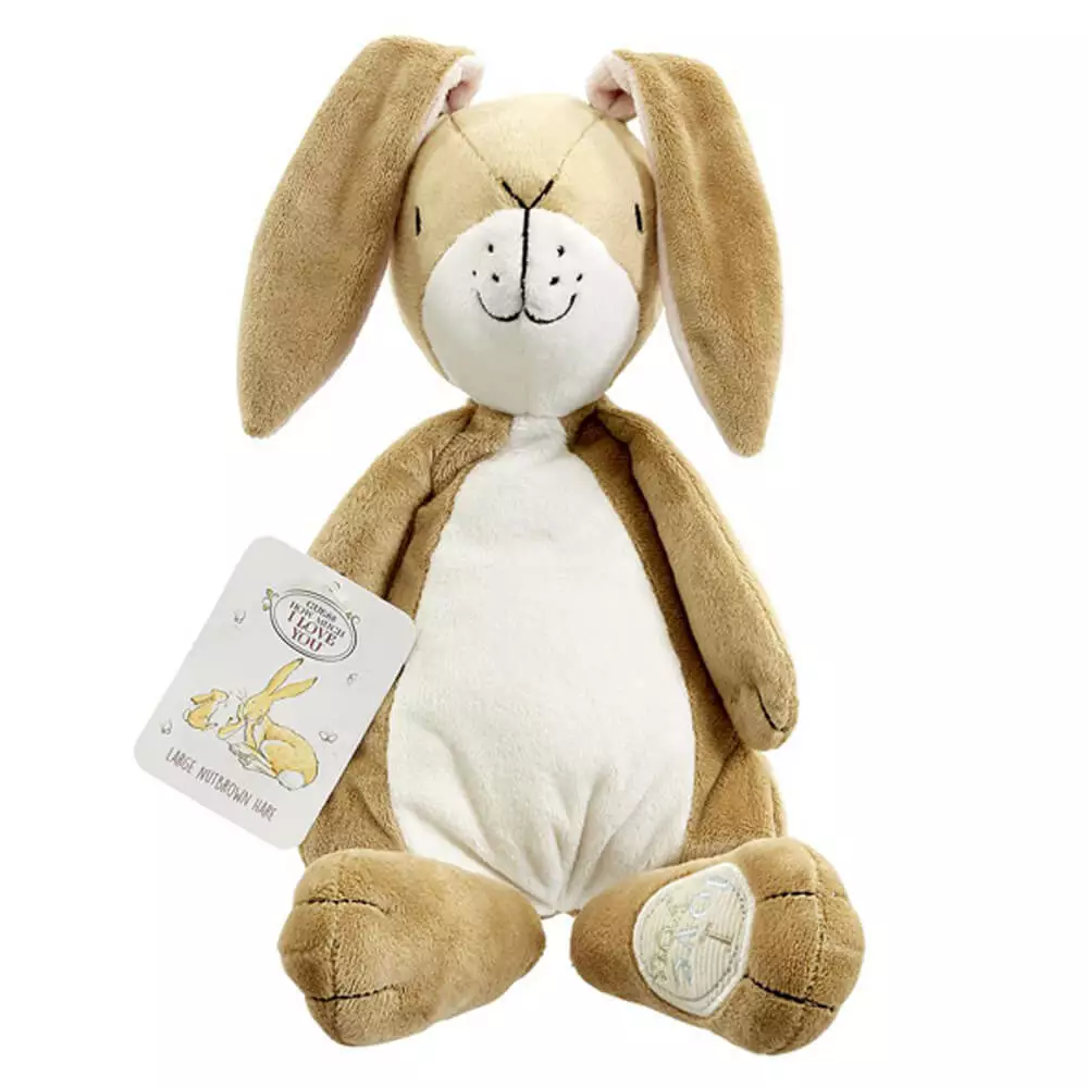 From the endearing Guess How Much I Love You picture book, this adorable 24cm Big Nutbrown Hare is made from super soft plush with delicately embroidered features and an embroidered ‘I Love You’ motif on his foot. Cuddles abound with this machine-washable plush toy, which is the perfect size for at-home play or on-the-go adventures. A special bean filling gives Big Nutbrown Hare a squishy body so that he can sit upright on any surface; making him a stunning decor piece for baby’s nursery.