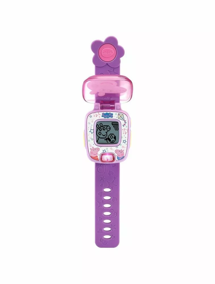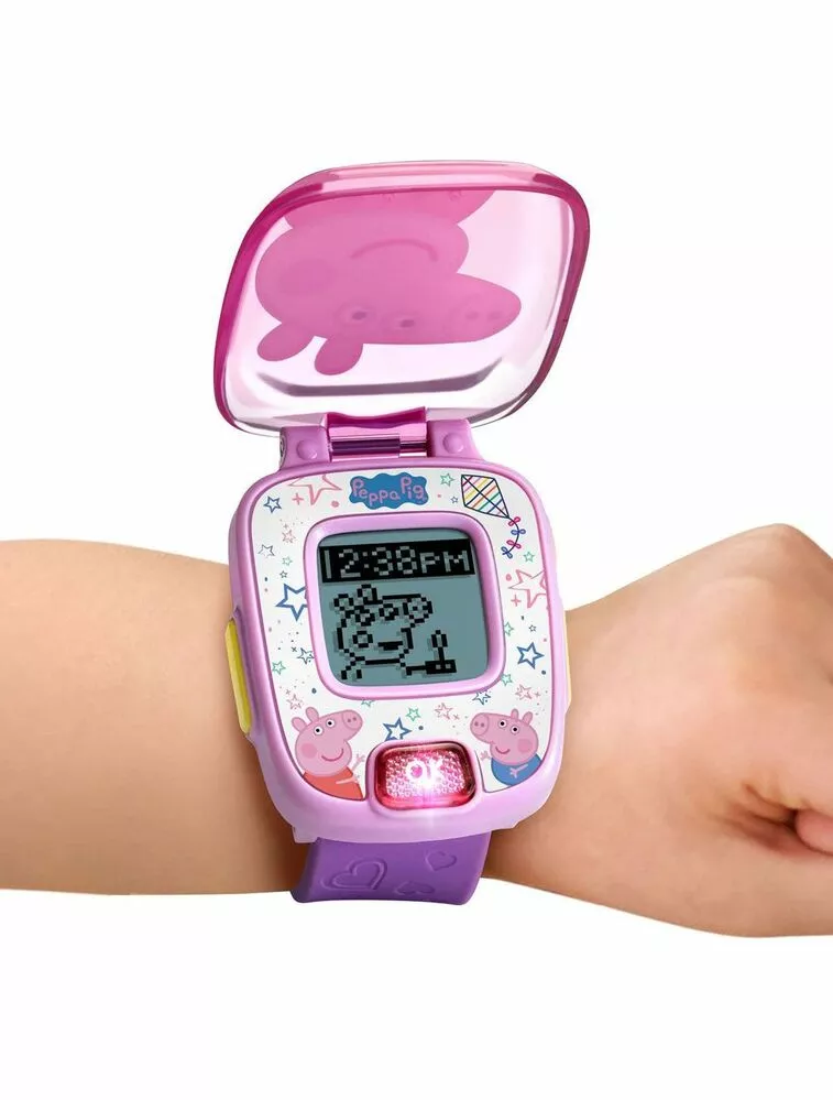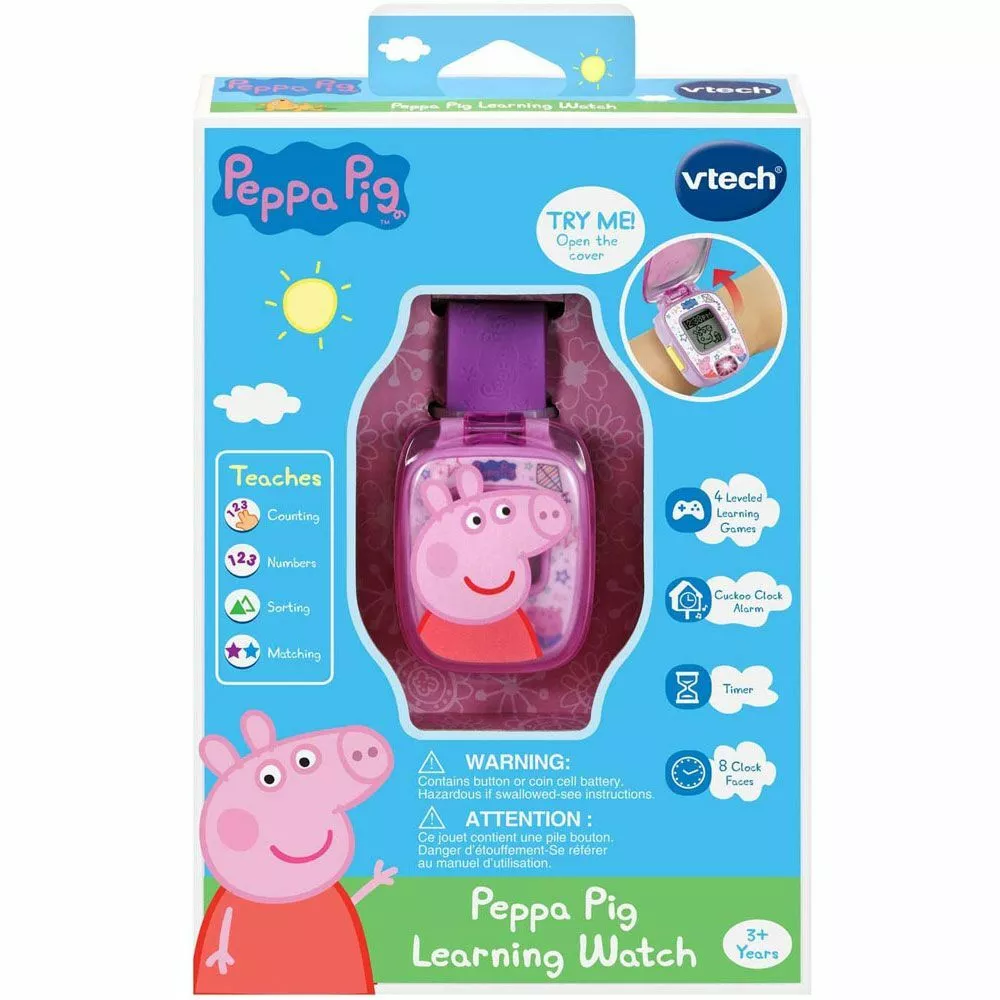 It’s time to learn with Peppa Pig! The VTech® Peppa Pig Learning Watch is a great wearable gadget for children! Not only will this watch show you the time, there is an alarm, timer & stopwatch functions. There are also 4 built-in games to introduce and reinforce the learning of numbers, counting, sorting and matching as you play and solve puzzles with Peppa and her friends! Count the number of fish in the tank, match the shadow with the correct image of an animal or friend or pick out fruit or vegetables on from a conveyor belt. Watch includes 8 interchangeable digital clock faces.