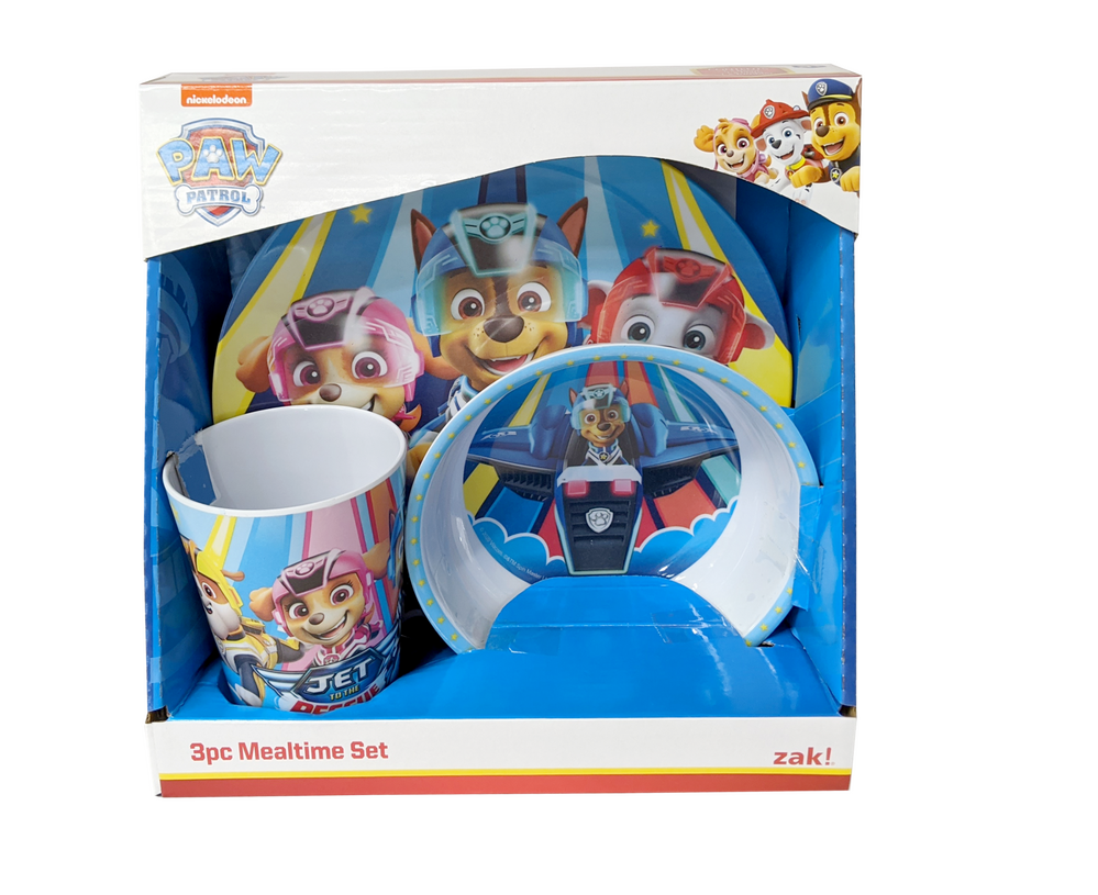 Make meal times fun with Paw Patrol! Featuring fun Paw Patrol prints. Includes cup, bowl and plate. BPA free.